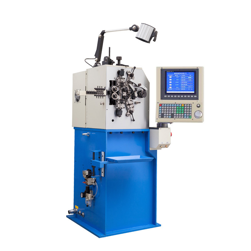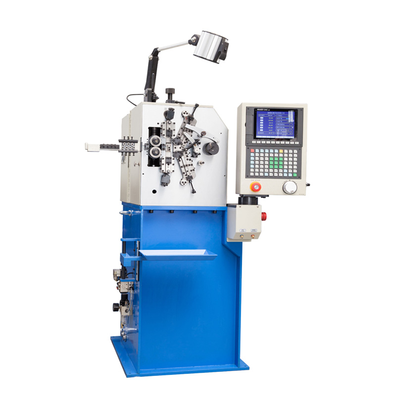 XD-608六轴电脑压簧机,共有六轴,分别为送线1轴、切刀2轴、外径1轴、螺距1轴、芯棒前后移动1轴,各伺服轴之间可根据系统的程序独立或同步操作。该机台的机械部分采用伺服电机独立控制,各个伺服轴的执行动作可以通过在电脑系统中程序指令的编辑来完成,不仅提高了生产速度,还降低了人工操作难度,大大缩短了调试样品的时间周期。